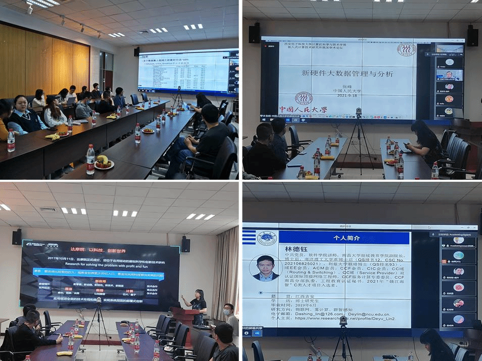 南开大学程明明教授、中国人民大学张峰副教授、阿里巴巴达摩院视觉技术高级算法专家唐铭谦、南昌大学继续教育公司副经理林德钰博士、公司tyc33455cc讲师黄钊博士先后带来了精彩的报告。程明明教授就大规模图像的多粒度目标检测进行了详细的报告,阐述了从实例、图像、以及整个数据集三个粒度出发,对大规模图像集合进行联合分析,以减少图像理解算法对大规模精确标注依赖的过程。张峰副教授以新硬件大数据管理与分析为主题,并结合大数据管理技术正经历以软件为中心到以数据为中心的计算平台变迁的时代背景,重点关注新型硬件环境给大数据管理与分析领域带来的机遇与挑战,介绍了混合异构硬件环境下大数据应用加速的最新研究进展。阿里达摩院视觉技术高级算法专家唐铭谦介绍了视频内容结构化、多模态搜索、视频场景下内容合成,结合媒体AI及AI编辑部产品,赋能融媒体应用的最新进展。随后,林德钰博士简单综述了万物感知及互联、数能一体化通信的相关进展,深度剖析了两者有机结合存在的重要挑战,理性分析并指出了其科学合理的解决方案。黄钊博士以新时代下"硬件安全"前沿研究技术分享为主题,从可靠和安全两个维度出发,针对物联网等典型应用,探讨了可靠芯片的安防检维技术,深入分析了"硬件安全"问题产生的背景以及目前主要的防护手段和策略。参加论坛的师生与报告嘉宾就相关技术难点和个人职业规划问题进行了深入交流。