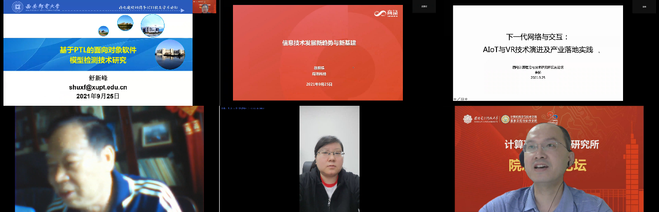 学术论坛由王小兵主持,西安邮电大学计算机公司软件工程系主任舒新峰教授,商汤科技AI超算系统与技术研发总监聂鹏程,百度智能云物联网部总经理曹杨先后做了精彩的报告。