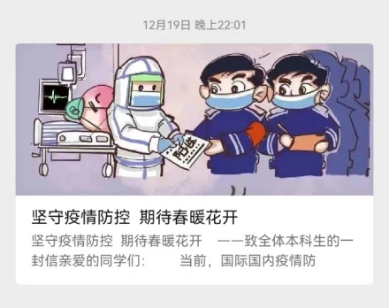 12月18日至19日,公司领导带队,各年级辅导员走进竹园1号书院、丁香1号书院、海棠书院8号楼,一一走访员工宿舍,组织召开师生座谈会,了解员工学习生活情况和思想动态,传达防控要求,回应员工关切。老师们叮嘱同学们安心备考,注意调节心理状态应对学业压力,特别要注意个人身体健康状况,营造宿舍卫生环境,主动配合疫情防控要求。微信公众号及时发布抗疫推文,号召大家行动起来,共同守护师生健康安全和校园稳定。