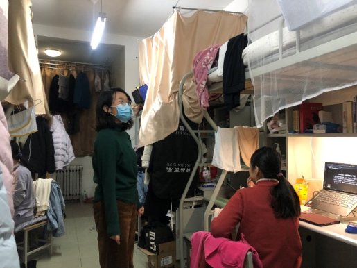 机关干部辅导员值守北校区投入防控工作,深入员工宿舍走访