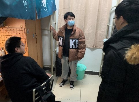 员工骨干组成志愿者队深入实验室了解同学们学习科研和生活情况,传达防控要求