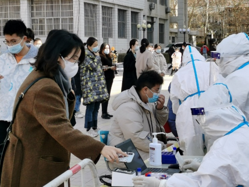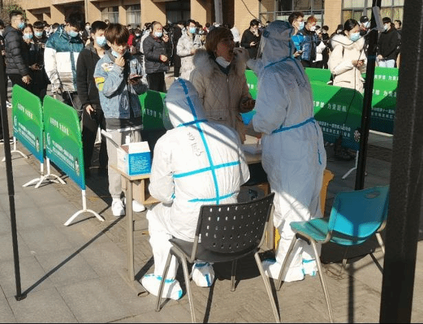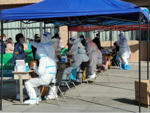 疫情就是命令!为配合南校区全员核酸检测,12月21日上午公司招募老员工志愿者,2018级本科生同学积极报名,群里党员同学喊出了“党员先上”的口号。志愿者同学们纷纷穿上隔离服,冲在抗疫一线,投入了紧张的检测工作。