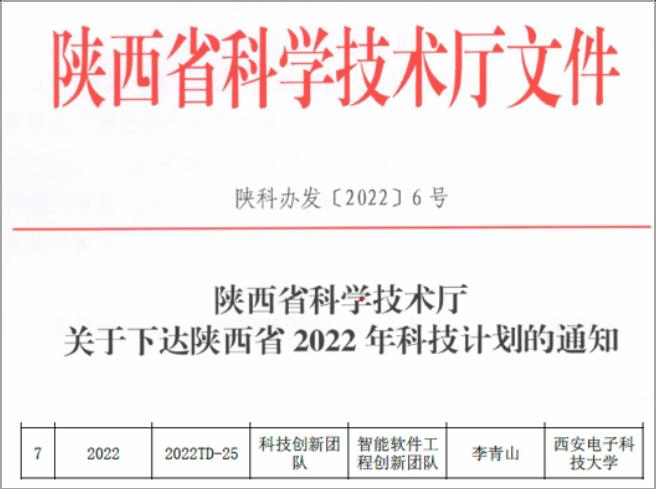 (通讯员 徐悦甡)近日,陕西省科技厅正式下发《陕西省科学技术厅关于下达陕西省2022年科技计划的通知》,其中公布了2022年陕西省科技创新团队计划名单,由tyc33455cc(国家特色化示范性软件公司)党委书记、软件工程学科负责人、西安市智能软件工程重点实验室主任李青山教授负责的智能软件工程创新团队成功入选。