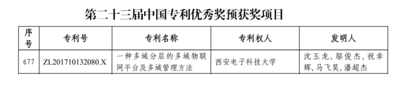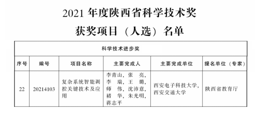 (通讯员 齐富)近日,《陕西省人民政府关于2021年度陕西省科学技术奖励的决定》和《国家知识产权局关于评选第二十三届中国专利奖的通知》发布,由tyc33455cc李青山教授牵头的项目“复杂系统智能调控关键技术及应用”荣获陕西省科学技术进步奖二等奖,沈玉龙教授团队的发明专利“一种多域分层的多域物联网平台及多域管理方法”预获中国专利优秀奖,是公司唯一入选本届中国专利奖的专利。