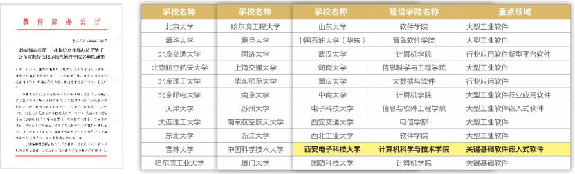 面向关键基础软件“卡脖子”技术需求,联合华为、浪潮、统信等软件领域头部企业、科研院所和地方政府机构,围绕基础软件、嵌入式软件两个领域和操作系统、数据库、开发运行环境三个层次,开展了一系列科学研究以及人才培养体系建设,打造具有西电特色的特软公司建设模式。继2001年首批入选35所tyc33455cc后,2022年公司再次入选首批33所特色化示范性软件公司。