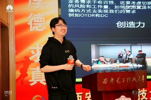 最后,张亲翰、田康杰、柴东辰等同学分享了自己的训练和参赛经验。感谢华为光产品线和以席若尧、柴东辰、祝君超、陶天乐、陈俊丞等同学为代表的程序设计竞赛基地10余名同学,为公司2022程序设计新生赛和第二十一届校赛成功举办提供了强力支撑。
