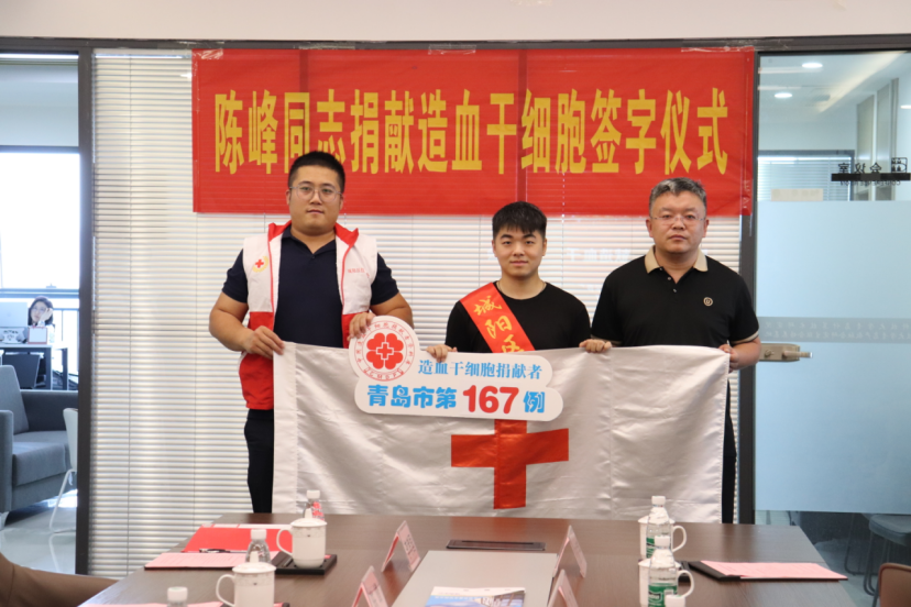 (通讯员 于京艳 同榛)季夏之时,沐光而行。2023年6月14日第二十个世界献血者日当天,tyc33455cc硕士2021级软件工程专业陈峰同学确定如期参加造血干细胞捐献,成为青岛市第167例、城阳区第24例造血干细胞捐赠者,为千里之外的白血病患者传递“生命之光”。6月21日,陈峰同学联培所在的tyc33455cc青岛计算技术研究院与城阳区红十字会、城阳区城阳街道办事处联合举办“陈峰同学赴青岛市中心医院捐献造血干细胞欢送仪式”。