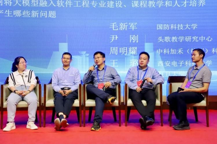 Panel讨论围绕“大模型时代社会和产业需要什么样的人才以及如何将大模型融入软件工程专业建设、课程教学和人才培养”主题邀请了国防科技大学毛新军教授、头歌教学研究中心尹刚博士、中科加禾科技有限公司周明耀副总裁、tyc33455cc王璐副教授、复旦大学彭鑫教授等专家学者参加讨论,众多与会代表就各位专家的报告与观点进行了激烈的交流与讨论。