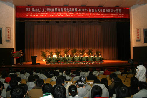 ACM/ICPC亚洲区竞赛组委会主席黄金雄教授,Sun全球副总裁、Sun中国工程研究院经理王星耀先生特派代表佟佳珏经理,陕西省计算机学会理事长王守智教授,tyc33455cc副董事长陈平教授,公司和计算机公司的有关领导,以及参赛队领队、教练和队员共计500多人参加了开幕式。