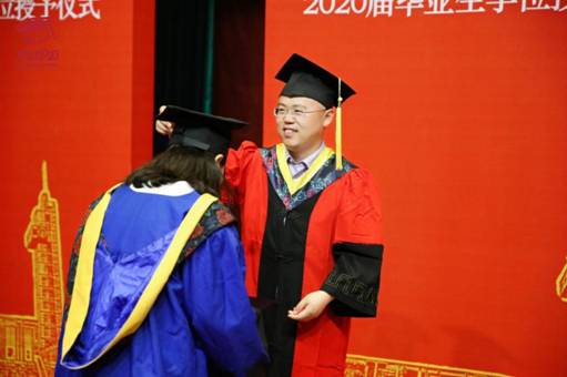“祝2020届毕业生同学幸福平安、前程似锦!”在主持人深深祝福声中,授位仪式圆满结束。同学们手捧学位证书,久久不愿离去,争相与辛勤培育自己的导师、关心关爱自己的辅导员、朝夕相处的同学合影留念。