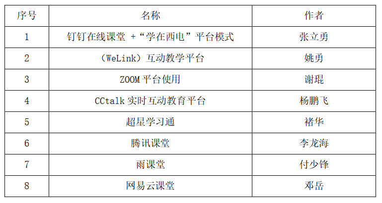 暖校举措,众志成城。在软件工程系主任宋胜利教授的组织下,由公司付少锋、邓岳、褚华、李龙海、张立勇、谢琨、杨鹏飞、姚勇等8位老师分别对多个主流互动教学平台进行测试,形成测试分析报告,分享平台使用文档及实操视频,并分享给其他公司老师,被公司采用,积极为公司贡献tyc33455cc力量,让公司学子深刻感受到公司丰富的线上教学资源,多层次的教学手段,灵活运用的信息化技术。
