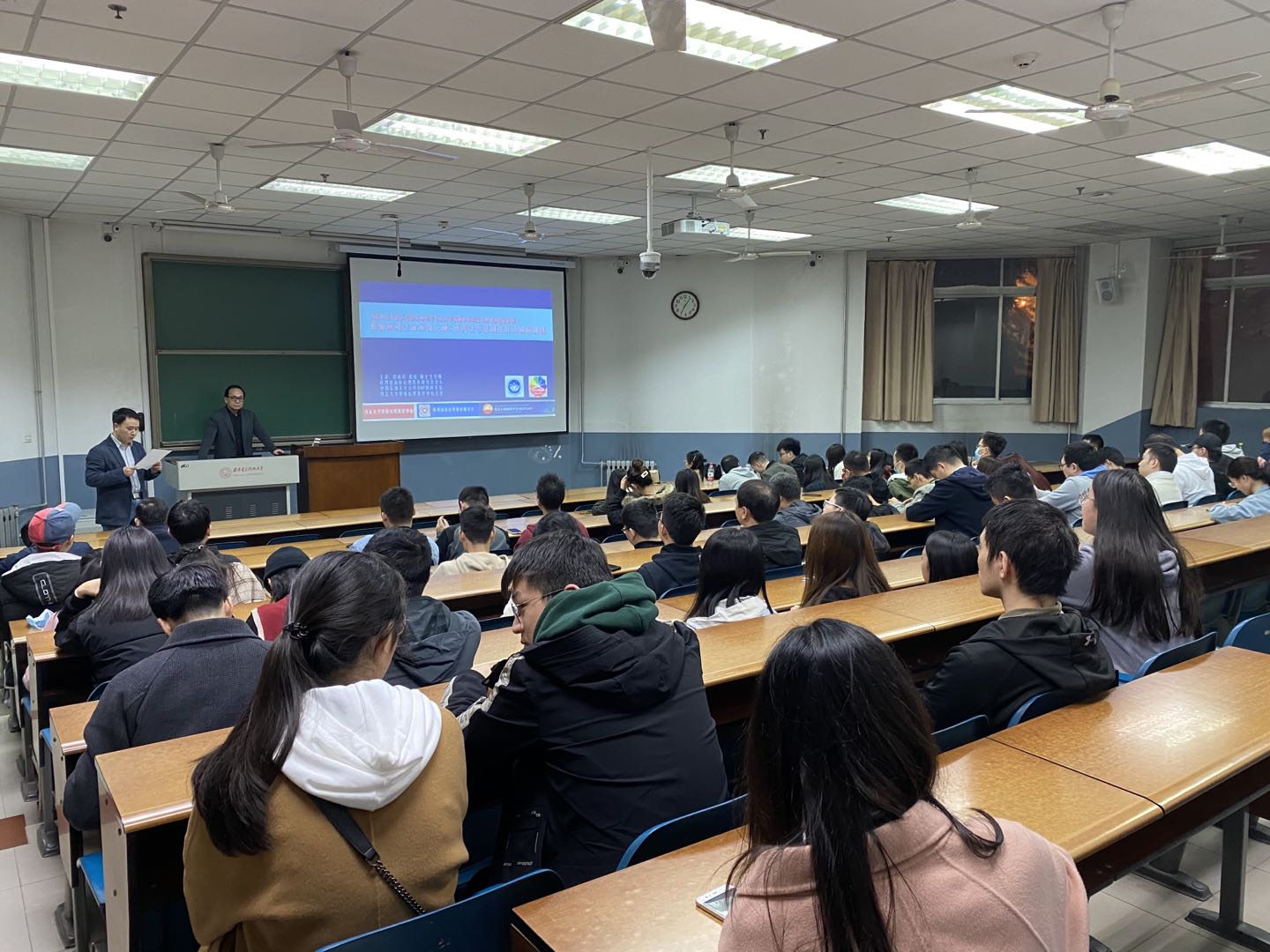 在同学们的积极参与下,讲座一直持续了两个多小时,最后,这场精彩的讲座在一片热烈的鼓掌声中结束。