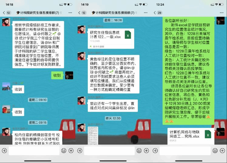 四、精准摸排,全面掌握公司研究生状态信息。按照公司疫情防控工作要求,公司办公室管理人员、研究生辅导员密切协同,迅速采集公司1500余名研究生的状态信息,通过与疫情通和晨午检系统交叉校验,精准掌握每位员工的状态和位置信息,协助导师做好员工的关心关爱和指导工作。同时,公司要求导师切实承担起研究生第一责任人的角色,严格按照公司和研究生院的各项工作要求,实时掌握所指导研究生的学习和科研工作状态,了解每位研究生的科研进展、生活、心理和就业等情况,采取多种形式对研究生开展学习和科研指导,做到至少每2天联系沟通1次,发现问题及时反馈至各研究所和公司,上下联动,共同解决研究生遇到的各种实际困难,为疫情防控期间做好公司产品工作提供全方位综合保障。