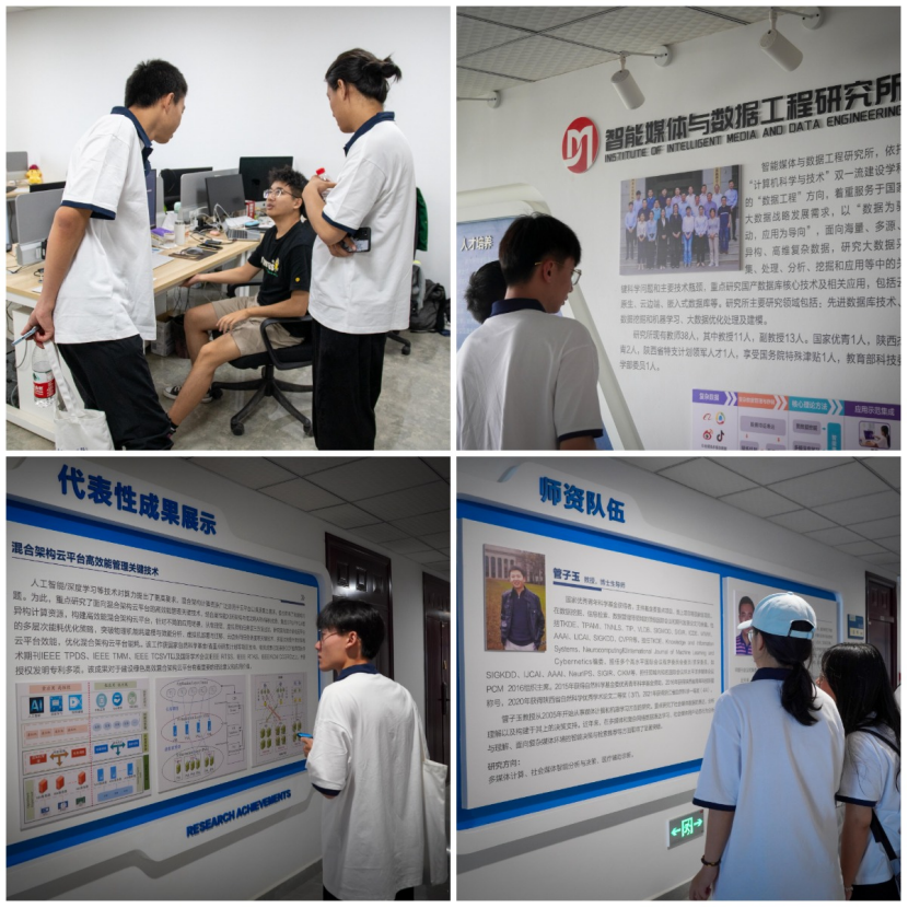 开营仪式结束后,老师们分组带领同学们前往网安大楼各研究所进行参观、交流,同学们就自己感兴趣的问题与老师、学长们进行深入探讨。
