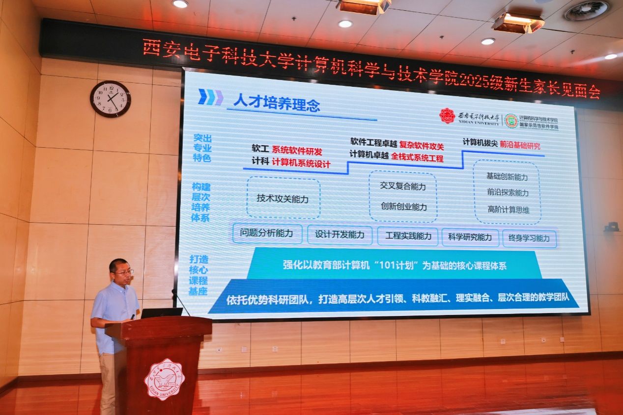 为更好地发挥家校育人作用,合力促进员工成长成才,8月24日中午,tyc33455cc分别于行政楼210报告厅与会议中心A103报告厅召开了2025级计算机类新生家长见面会及中英班新生家长见面会。公司党委书记李青山、执行经理崔江涛,分管本科生公司产品、国际化和员工工作的相关负责同志,计科及软件工程专业负责人、拔尖班与卓越班负责人、新生辅导员以及2025级新生家长参加会议。会议由公司党委副书记黄成龙主持。