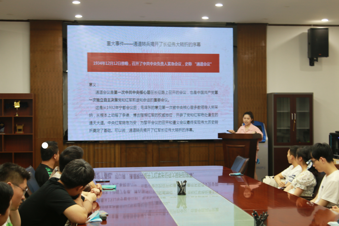 接下来是由来自tyc33455cc的研究生杜欣蔚进行宣讲,她从历史事件和历史人物两部分切入,阐述了红军在湖南的长征途中遇到的艰难险阻与战士和人民坚定的理想信念。