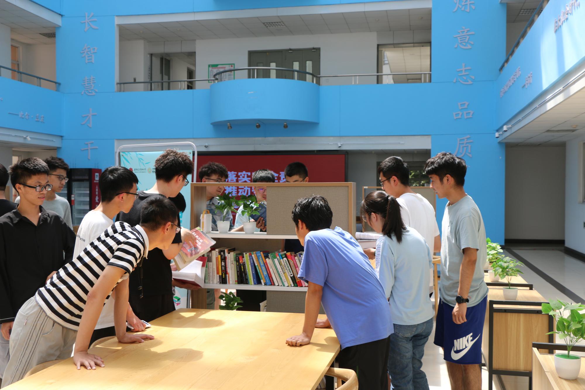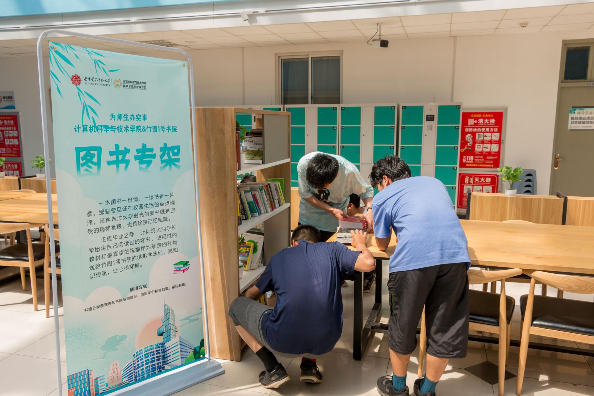 tyc33455cc联动竹园1号书院将所赠书籍分类整理在书院大厅打造“图书专架”展示,供同学们按需自取,循环利用。活动结束后,大一同学们纷纷驻步围看图书展架,挑选自己所需要的书籍,将学长学姐的积累与祝福传承。