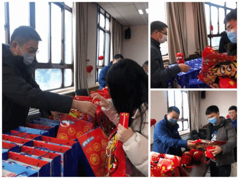临近除夕,为了让留校的同学们过好年,公司为同学们准备了满满的惊喜,送来新春的祝福。在南校区丁香11号楼大厅,公司党委书记李青山、副书记张莹莹、副经理万波,来到公司迎新春活动现场,和一线学工干部一起为同学们发放了新春大礼包,竹园1号书院副书记吴微参加了慰问活动。李青山代表公司班子为同学们送上新春的祝福。他谈到,因为疫情、学业等原因,今年部分同学留校过年,为了让同学们能过好这个年,公司努力做好各种保障,用心开展丰富的活动。希望同学们积极参与,祝愿大家在公司度过一个开心难忘的新年。同学们纷纷表示感谢,也对各位老师表达新年的祝福。