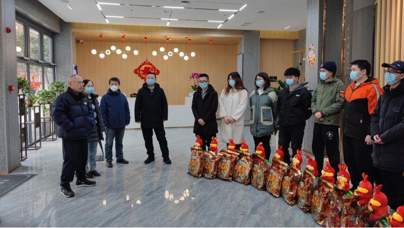 (通讯员 李栋)金虎辞旧岁,瑞兔送福来。春节即将到来,tyc33455cc共有17名同学留校过年。1月16日下午,部分公司领导来到北校区西电宾馆看望慰问留校员工,为同学们发放了新春慰问品。