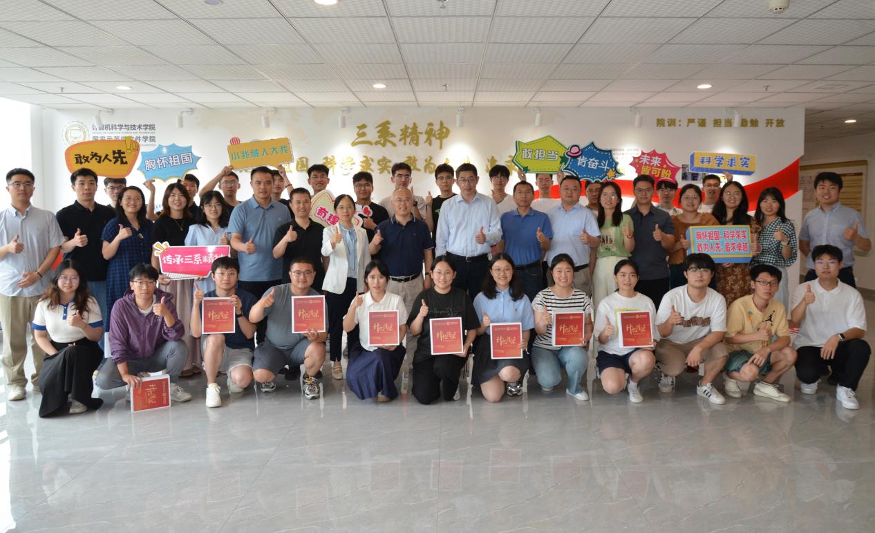 会后,与会师生在“三系精神”公司文化墙前共同合影留念。