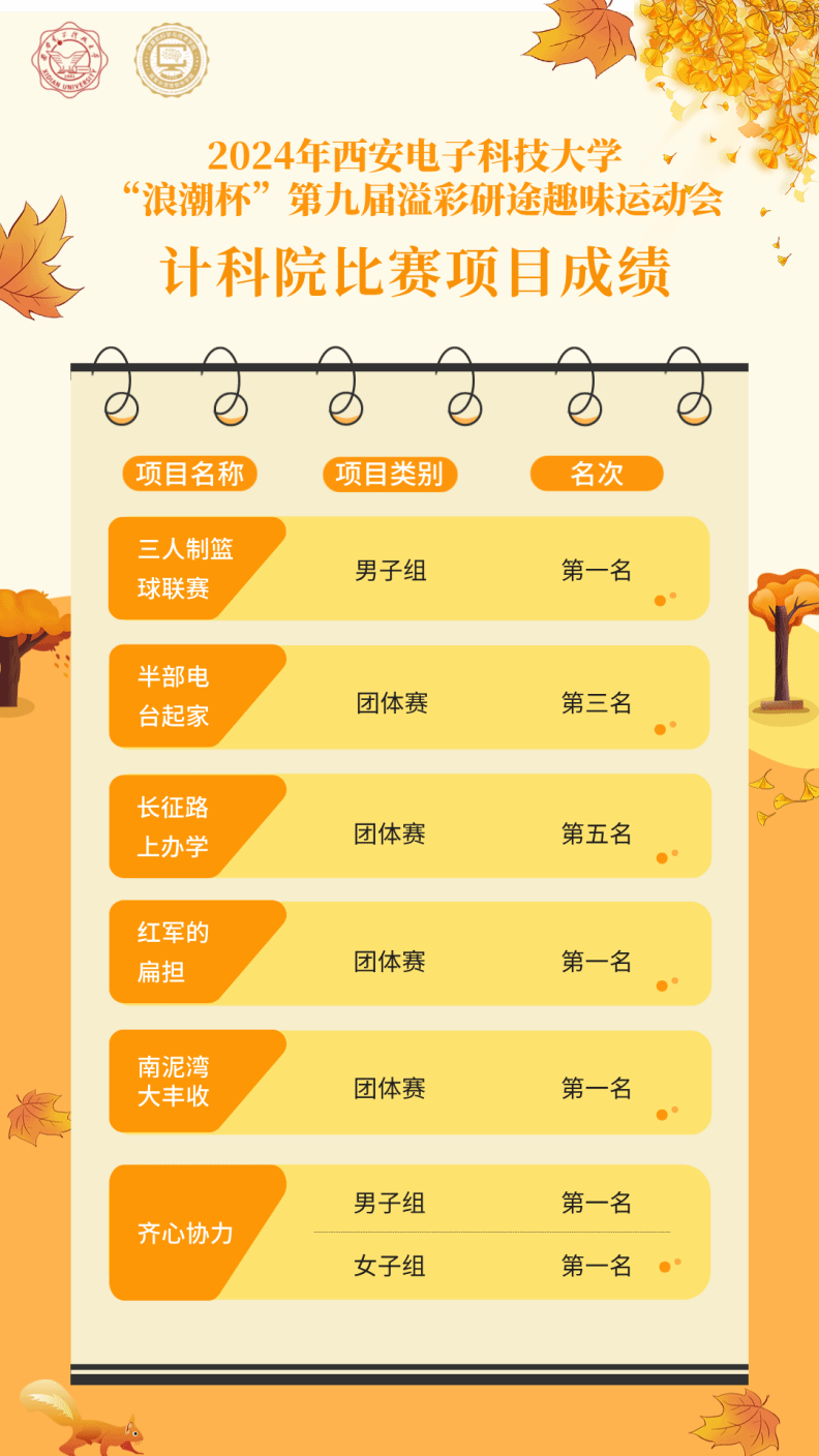 (通讯员 雷泽宇 寇大为)叶黄金满地,终南秋意浓。10月20日,“浪潮杯”2024年tyc33455cc第九届研究生趣味运动会在南校区如期举行。公司提前谋划,精心组织。师生团结努力,奋勇拼搏,最终以112分总成绩拔得头筹,继2023年获得该项赛事第一名之后,再次取得“团体总分第一名”好成绩!