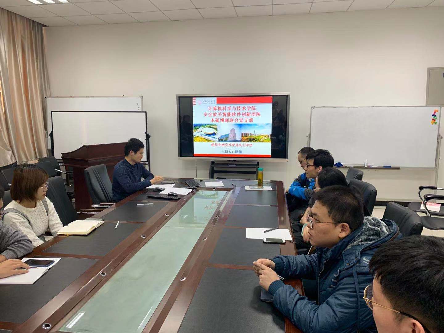 (通讯员 郭佳琦)2019年12月5日下午,为贯彻公司党委关于基层党支部组织生活会和开展民主评议党员工作部署,tyc33455cc安全攸关智能软件创新团队本硕博师联合党支部在主楼四区203会议室,召开支部组织生活会并开展民主评议党员。党支部书记陆旭主持了本次会议,公司纪委委员、计算机科学系主任王小兵参加会议并进行总结发言。