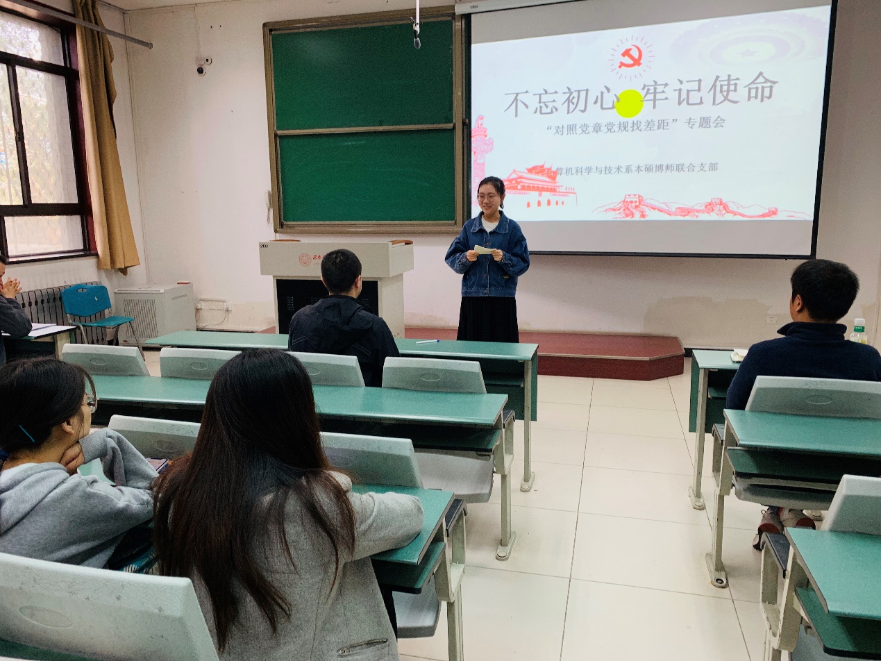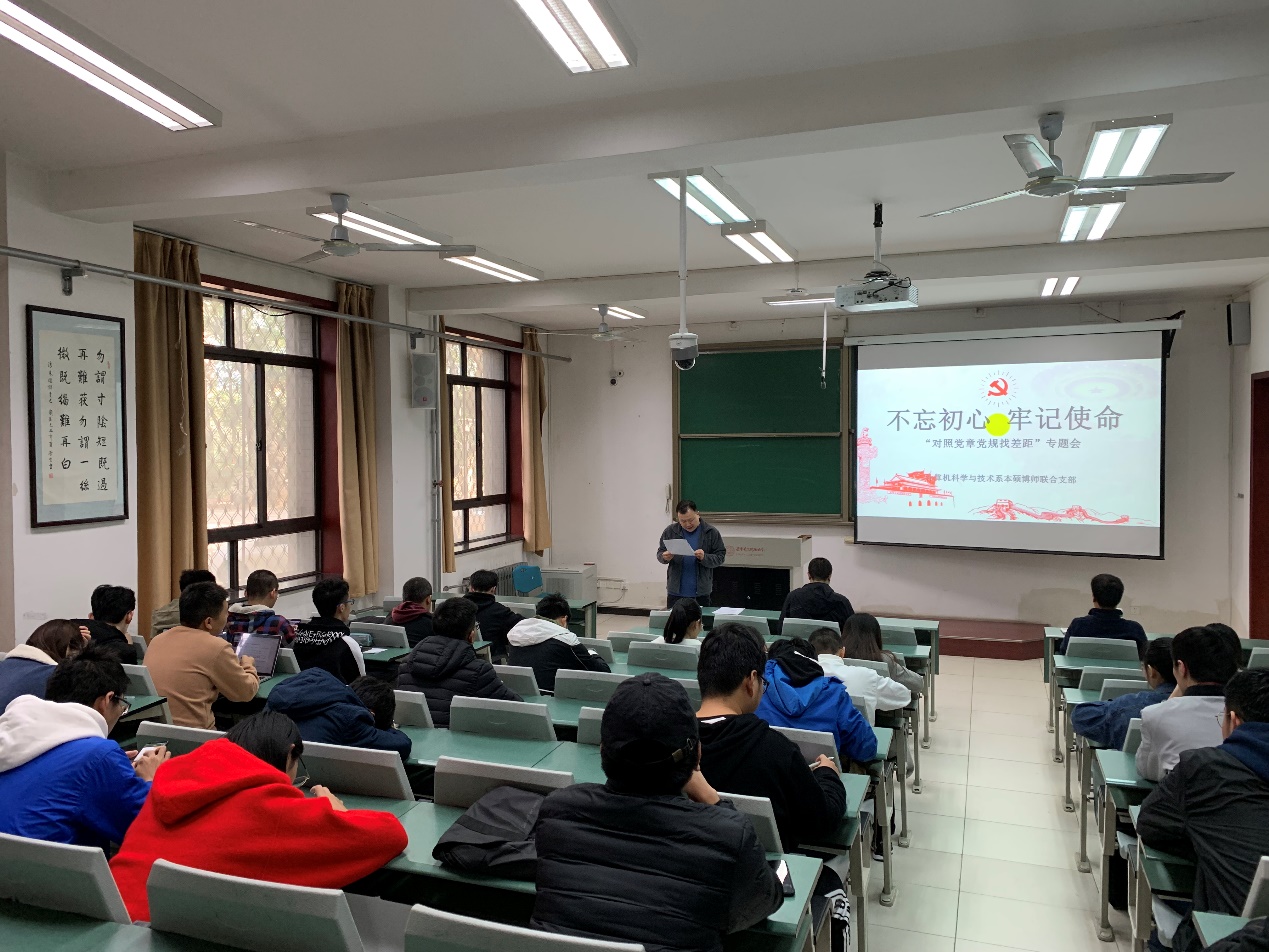 党支部副书记段然在南校区面向本科生党小组召开了同样的“对照党章党规找差距”专题会,大家对照党章党规,结合个人学习和工作实际,主动检视自我,自觉修正错误,进一步增强了党员意识、纪律意识,提升了政治境界、思想境界、道德境界,做到了不忘初心、牢记使命。