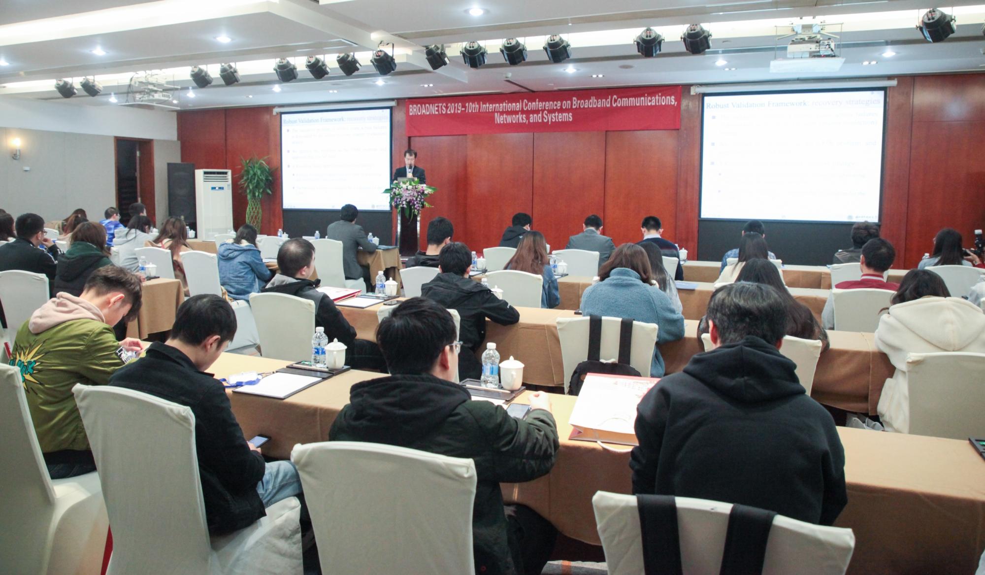 开幕式结束后,国防科技大学郭得科教授作了题为“Resilient Control Plane of Software-defined Networks”的特邀报告。此次会议包括Communication and Sensor Networks、Wireless Networks and Applications、Internet of Things、Pervasive Computing、Security and Privacy共五场论文报告。会议共持续两天,于10月28日顺利闭幕。经过专家评审,论文“Man-Machine Interaction for Smart Home Based on Smart Watch”斩获Broadnets 2019最佳论文奖。