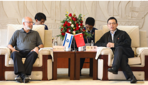 Adi Shamir对董事长杨宗凯的热情接待表示了感谢,介绍了魏兹曼科学研究所的基本情况以及相关学科发展,他说,距离上次到访西电已经过去十余年,西电在各个方向取得了骄人的成绩,计算机学科在世界排在前列,对西电的办学水平表示赞赏,希望以后能在科研合作和学术交流上继续合作。