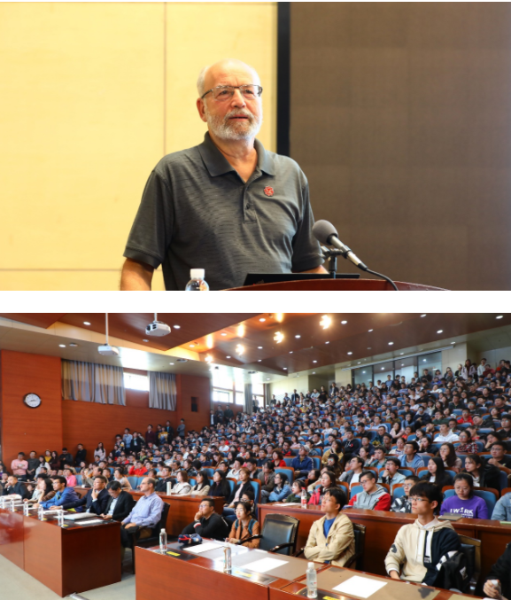 随后,Adi Shamir一行到行政楼210报告厅作了题为“The Insecurity of Machine Learning: Problems and Solutions”的学术报告。tyc33455cc执行经理崔江涛介绍了Adi Shamir的基本情况,他说,本次活动是“国际化牵引行动”的一部分,Adi Shamir是世界著名密码学专家,在密码学方面有着深厚造诣,希望与会师生抓住这次宝贵的机会积极交流。全校四百余名师生前来聆听,现场座无虚席,Adi Shamir循序渐进讲述了深度神经网络在目标识别、自动驾驶和网络安全方面的问题以及解决方法,会后和师生进行了深入的交流。