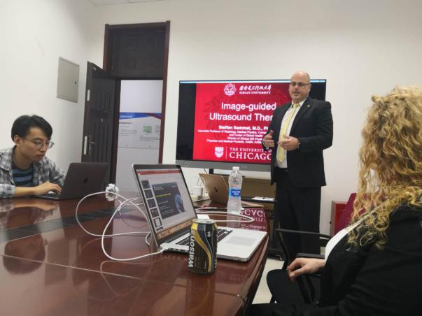 7月8日上午, Dr. Steffen Sammet教授以“Image-guided Ultrasound Therapy”为题,他的夫人Dr. Christina Sammet(美国西北大学放射科的诊断医学物理师)以“Balancing Risks in Pediatric Imaging”为题,分别为tyc33455cc研究生做了两场生动有趣的报告,对于拓展研究生的临床科研视野,开展国际合作具有非常重要的意义。