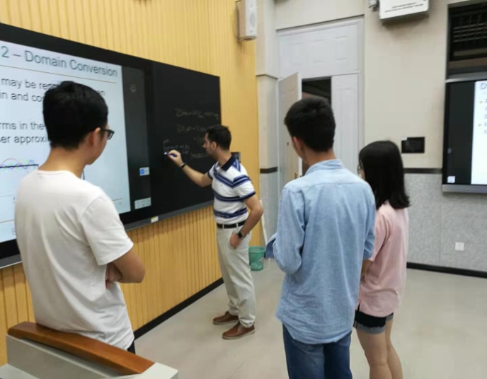 为顺利实施2019年国际双创实践周活动,西电tyc33455cc从美国知名高校引进5门国际化课程。其中包括《植入式传感器简介(Introduction to implantable sensors)》,该课程由tyc33455cc贾广教授负责引进,美国南佛罗里达大学Robert Karam教授亲自授课。本门课程由孙鹏岗老师担任校内助教,协助Robert Karam教授授课。