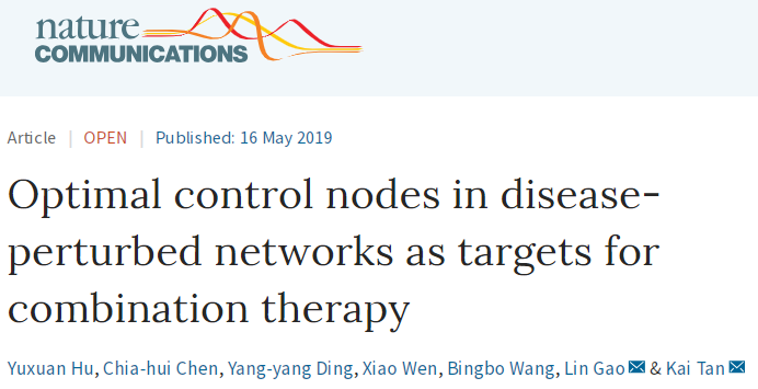 2019年5月16日,公司tyc33455cc高琳教授团队以第一单位在《自然》子刊Nature Communications(影响因子:12.353,中科院一区)上发表研究论文“Optimal control nodes in disease-perturbed networks as targets for combination therapy”。