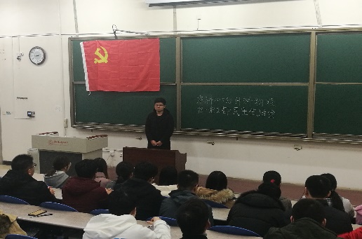 会议第一阶段,支部书记邓玉岩代表本科2015级计科物联第一党支部向全体党员大会述职,从基层组织建设,思想政治建设,三会一课学习,2018下半年党员发展等方面总结了2018年度支部开展的主要工作和所不足的地方。报告结束后,全体党员对党支部工作进行民主评议,肯定了党支部在2018年开展的各项工作以及取得的成果。同时,也进一步深入剖析了存在的问题并且探讨了解决问题的方法和想法。