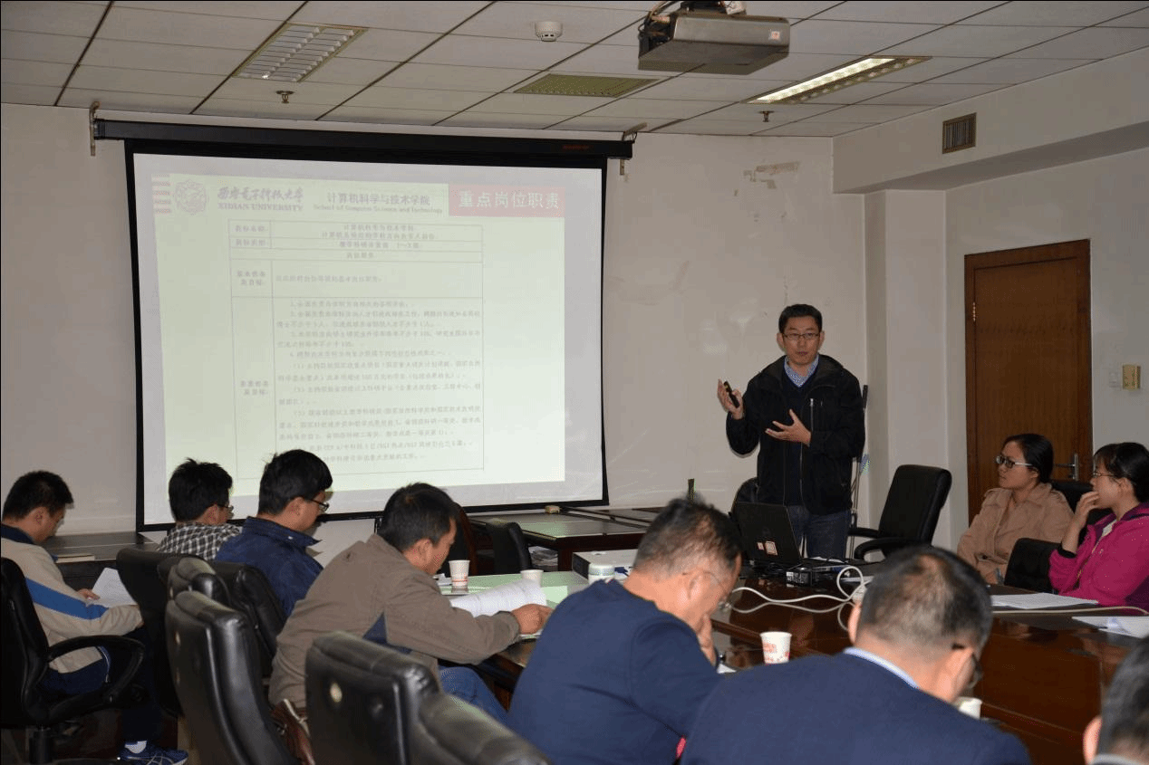 10月31至11月1日,tyc33455cc公司领导深入到计算机工程系、软件工程系、计算机科学系、网络工程系和实践教学中心等5个基层单位进行2018~2020年岗位聘任方案宣讲,就公司第二轮岗位聘任公司实施方案与广大教师进行深入研讨交流。公司党委书记李青山、执行经理崔江涛、副经理赵韩强、院办主任向麟海组成宣讲团代表公司参加会议,会议由公司党委书记李青山主持。