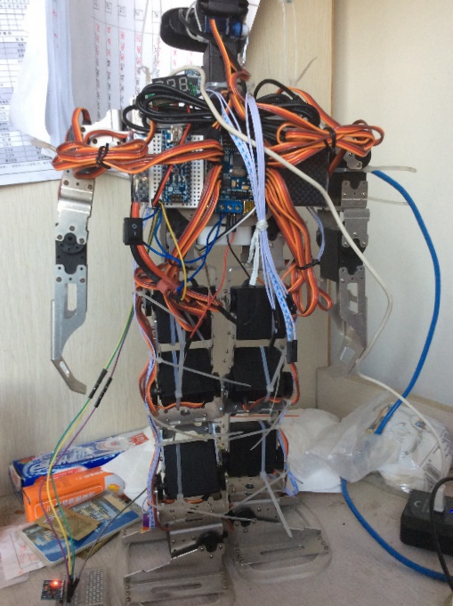 自2006年留校工作以来,苗启广教授每年都会担任国家老员工创新计划员工指导教师。用心指导,是苗启广的基本理念。只要员工有问题,无论早晚,电话、Email、微信、面谈,都会约到他,进行深度交流。被指导国创的黄志新同学,大三国创项目结题后,被激发了更强烈的学习和研究兴趣,萌发了做一个应用项目,将大学三年所学知识全部应用串起来的想法。咨询苗老师后,苗老师建议他自己动手设计一个机器人,并且希望“尽你所能,能自己做的就不要买现成的”。经过一年的努力,黄玉新设计出了“语音识别合成+图像跟踪识别+机器人平衡控制”的能够摔倒自己爬起来的人形步行机器人,并藉此获得了多所大学的Offer。现在已经在德国留学三年的黄玉新,重新设计了一款更精致的机器人,并获得UBICOMM2017国际会议Best Paper奖。