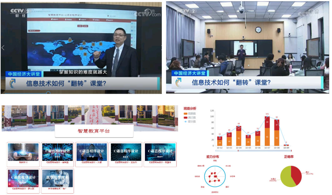 智慧教学平台是苗启广、宋建锋课题组根据国家、教育部 “人工智能+教育”的战略部署,将科研成果向教学转化的成功案例,旨在从tyc33455cc本科《C语言程序设计》课程的教学任务出发,自主研发“双师型”C语言程序设计智能教育平台,包括在线考试系统、知识点粒度的MOOC开放课程、基于常用问题的教学社区AI机器人和智能教育大数据平台。
