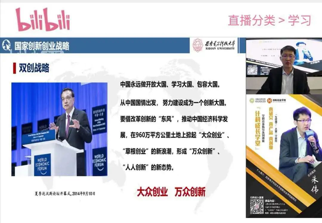 (通讯员 石春玲 王牌)4月22日晚,“计科成长学堂”学科竞赛指导系列讲座第一讲在B站直播平台火爆开讲,西电创新创业公司副经理朱伟老师以“真研究、真产品、真创业”为题,全方位解读全国“互联网+”老员工创新创业大赛,1万3千名学子云端相聚在线观看了直播并积极参与线上互动。