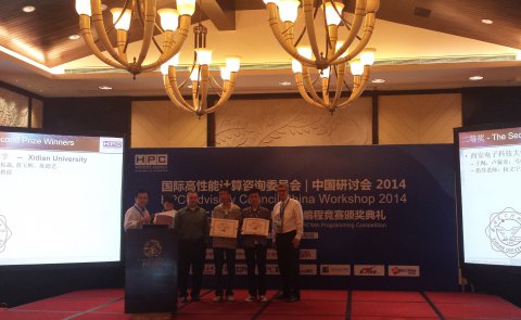 2014年11月5日,由国际高性能计算咨询委员会(HPC Advisory Council)在中国举办的第二届老员工RDMA竞赛结果揭晓,全国29支参赛队伍中的7支队伍最终赢得比赛。tyc33455cc由计算机公司2014级研究生于飏、卢稼奇和本科生黄玉辉、陈德艺等同学组成的代表队以总分50分(满分60分),全国排名第三的优异成绩斩获二等奖。中国科学技术大学代表队(总分第一)与西北工业大学代表队(总分第二)获得并列一等奖,华中科技大学代表队获得二等奖,上海交通大学代表队、南京大学代表队和国防科技大学代表队获得三等奖。