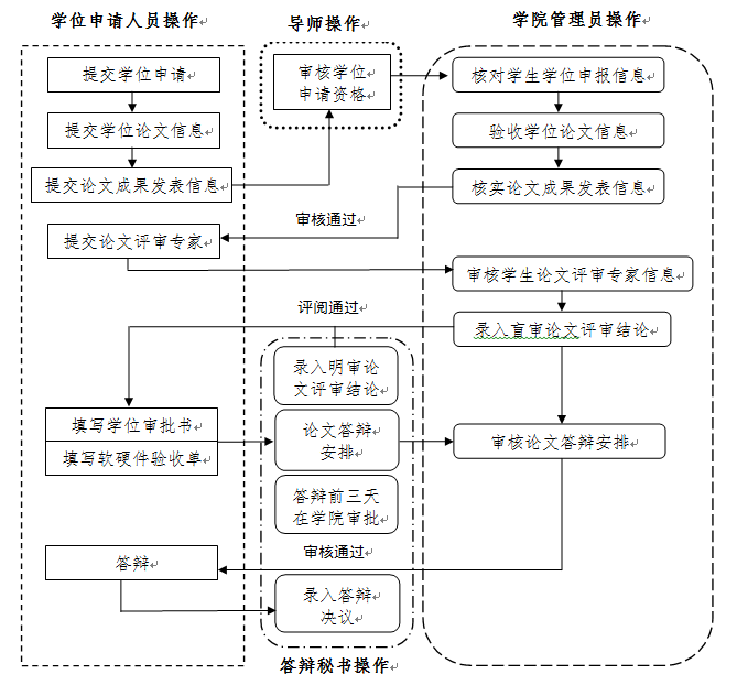 申请学位通过研究生管理系统进行,学位申请人员、公司管理员及答辩秘书登录http://gr.xidian.edu.cn,在“研究生管理系统(新)”栏中进入,登录后流程如下: