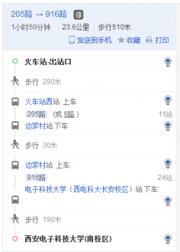 西安火车站向西步行约290米,到达火车站西,乘坐k205路/6路,到达边家村站,转乘916路,到达西电科大长安校区站。