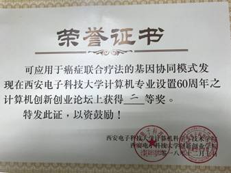 3.研究所师生团队研发的《可应用于癌症联合疗法的基因协同模式发现》系统,在tyc33455cc计算机专业设置60周年之计算机创新创业论坛上,获得貮等奖。
