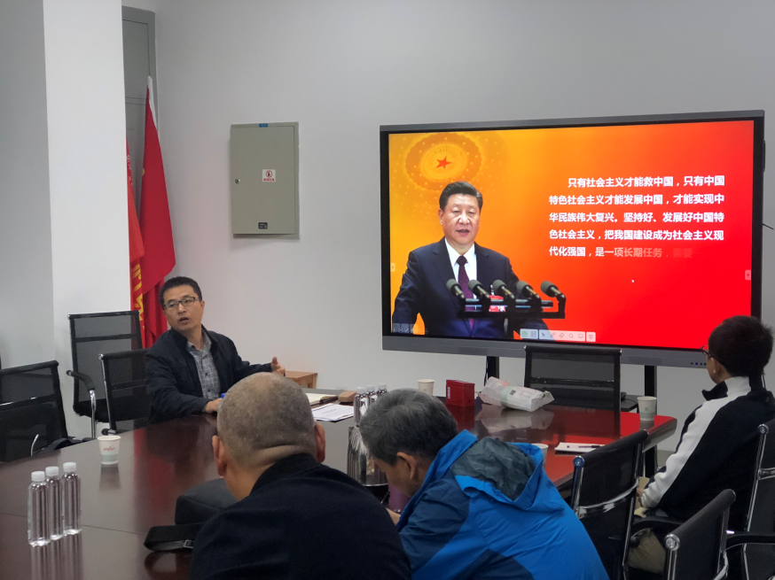 之后,支部书记杨力为全体支部党员讲“坚持和发展中国特色社会主义是当代中国发展进步的根本方向”为题的党课。全体党员从中国特色社会主义的发展历程,坚定四个自信,以及新时代如何坚持和发展中国特色社会主义几个方面深入学习了习近平新时代中国特色社会主义思想的内涵,回答了中国特色社会主义从何而来,为何要坚定“四个自信”,新时代如何坚持和发展中国特色社会主义等问题,并深刻认识到中国特色社会主义是在改革开放40年的伟大实践中得来的、在我们党领导人民进行伟大社会革命90多年的实践中得来的,中国特色社会主义是我们党带领人民历经千辛万苦找到的实现中国梦的正确道路,只有坚持和发展中国特色社会主义才能实现中华民族伟大复兴。