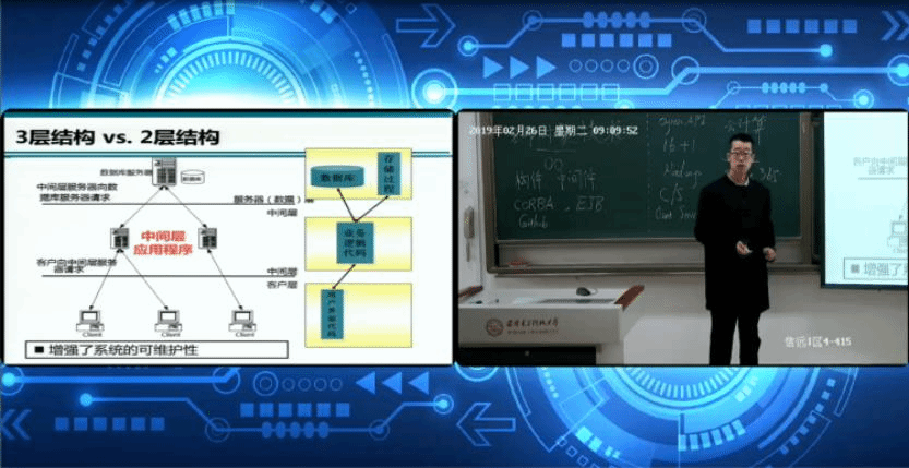 在线教学与教室教学最大的区别在于交互方式的改变,师生不在同一个物理空间内,不直接产生物理观感上的交互,老师和员工在不同的地理位置,缺少了一定的包括眼神、手势、表情等的交流。西电有着“砺学”的校训,徐老师在平时授课时非常看重这些交互,所以在授课时,不管是用超星客户端还是腾讯课堂,包括测试过的腾讯会议,都会把摄像头打开,用屏幕共享+画中画的模式,让同学们看到老师。然后在课程中间通过“学在西电”进行提问的时候,也一定让其他同学都听到,尽可能弥补没有物理空间交互的缺点。