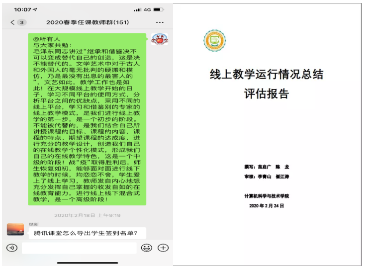 停课不停教,延学不停学。在疫情期间,教务老师们一直站在线上课堂的背后恪尽职守、殚精竭虑、勤勉尽责,确保本科教学不断线,计科战“疫”不缺席。我们坚决打好这场线上战“疫”,这场战“疫”我们也一定会赢。