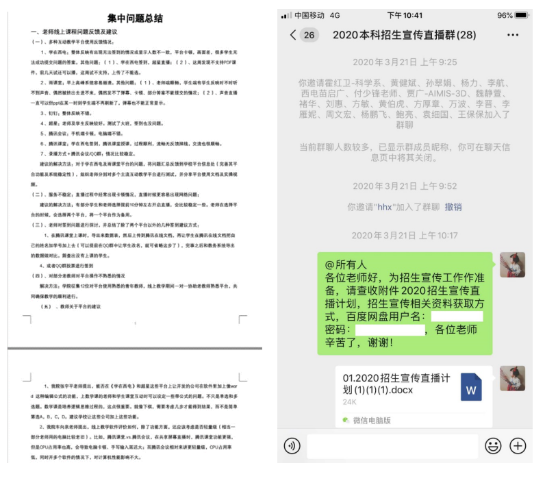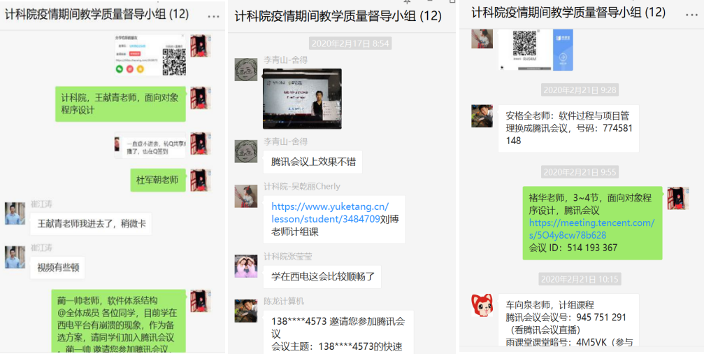 为确保教学质量,全面了解线上教学情况,公司成立了以8位院领导和办公室主任为主体的线上教学督导组,4位教务干事每人负责对接2个研究所,针对8个研究所的​tyc33455cc全体老师形成“网格化”督导模式。马继红老师负责软件工程研究所和智能软件与系统新技术研究所,上课前,马老师会把所有课程的链接、二维码、课堂暗号等收集到,然后发到督导群。通过辅导员、线上督导组、教务干事等渠道,随时收集员工对教学质量的反馈意见,发现问题,解决问题,做好线上教学的自我监控和员工的舆论引导工作。在全体教务老师的共同努力下,线上教学至今,未发生一起教学事故。
