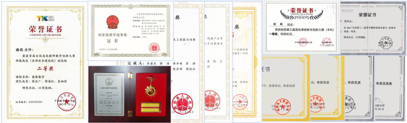 矢志创新,推动教改。在长期的一线教学工作中,谢琨同志积累了大量的经验,进行了深入的人才培养和本科教学工作的探索与实践。近五年主持教育部、省校级教改项目12项,其中省级重点项目4项,作为主要完成人参与教学改革项目8项;在CSSCI、中文核心等期刊发表教改论文9篇。作为课程负责人获首批陕西省线下一流课程1门,2021年被推荐国家级线下一流课程评选(在评)。经过长期的探索实践,教学改革成绩显著:获首届全国高校教师教学创新大赛二等奖(西电唯一),国家级教学成果奖二等奖,陕西省教学成果特等奖、一等奖、二等奖各1项,陕西省高校课堂教学创新大赛一等奖,第三届全国“互联网+”老员工创新创业大赛优秀导师奖和首届全国“互联网+”老员工创新创业大赛陕西赛区优秀导师奖,陕西省高校教师微课教学比赛三等奖,tyc33455cc第十二届讲课竞赛一等奖,tyc33455cc优秀教学质量奖一等奖等校级以上教学奖项近30项。