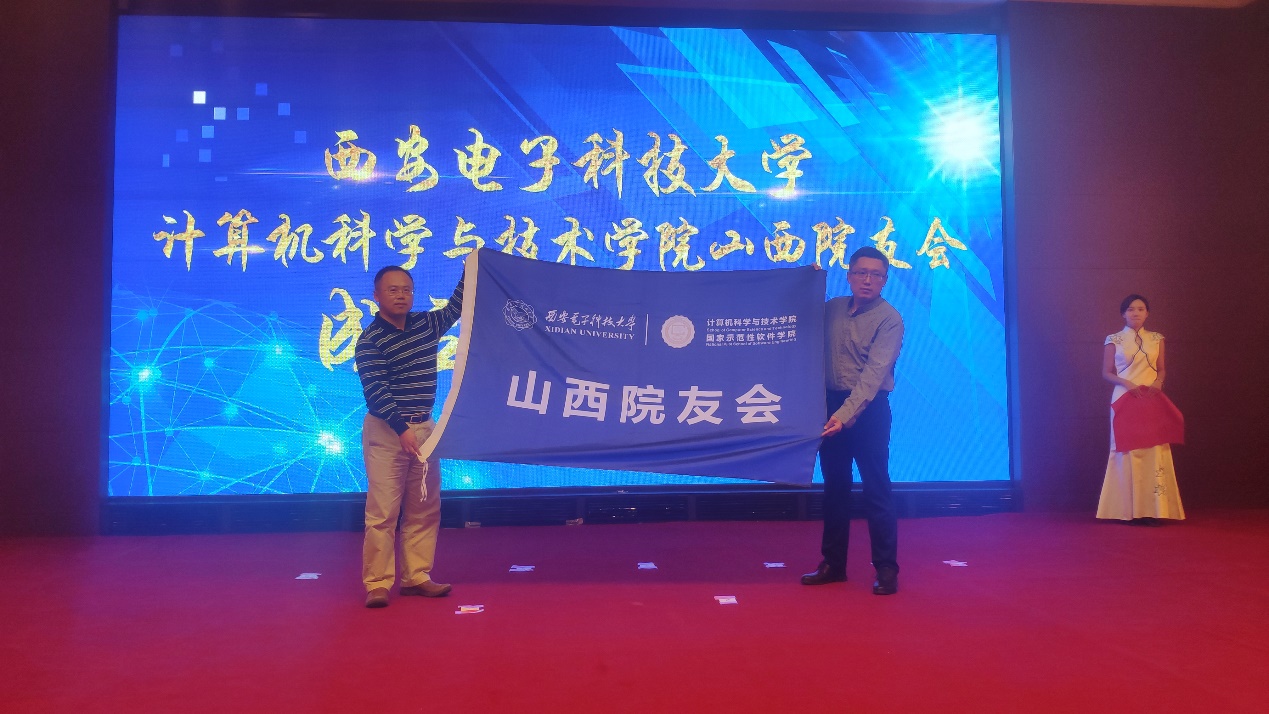 计算机科学与技术公司党委书记、院友会会长李青山为山西院友会会长蒲源授旗