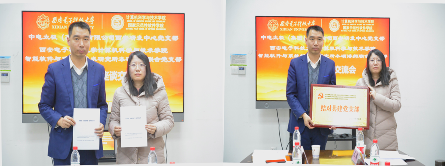 双方举行党支部结对共建揭牌仪式。中电太极(集团)有限公司西安研发中心党支部书记宋锋和ISSI本硕博师联合党支部书记王璐签署党支部共建协议,在组织建设、思想建设、党员实践等方面达成共建意向。