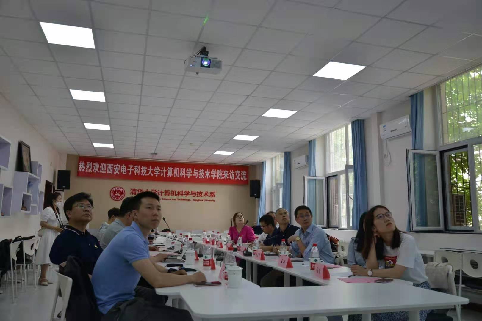 在清华大学东主楼10-103会议室,双方党委开展座谈,清华大学计算机系党委委员、教师党支部书记、党委研究生工作组组长和党委员工工作组组长等7人参加了会议。